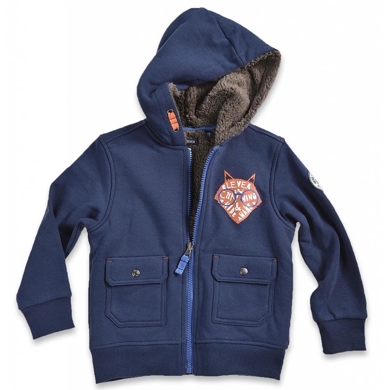 Donkerblauw sweatvest met warme borgvoering voor een jongen van het babykleding merk Blue Seven.