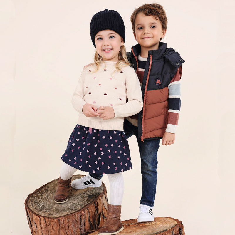 – Middenvoor sluit de jongens bodywarmer met een rits.