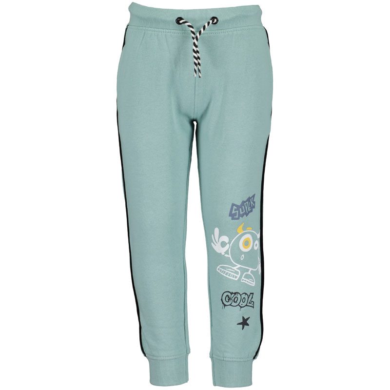 Gave oud groene jongens joggingbroek van het kinderkleding merk Blue Seven. De sweabroek heeft een trendy zwarte bies langs de zijnaden. Onderaan de linker pijp is een coole print aangebracht van een Urban emoticon met daarbij de tekst “Super Cool”.
