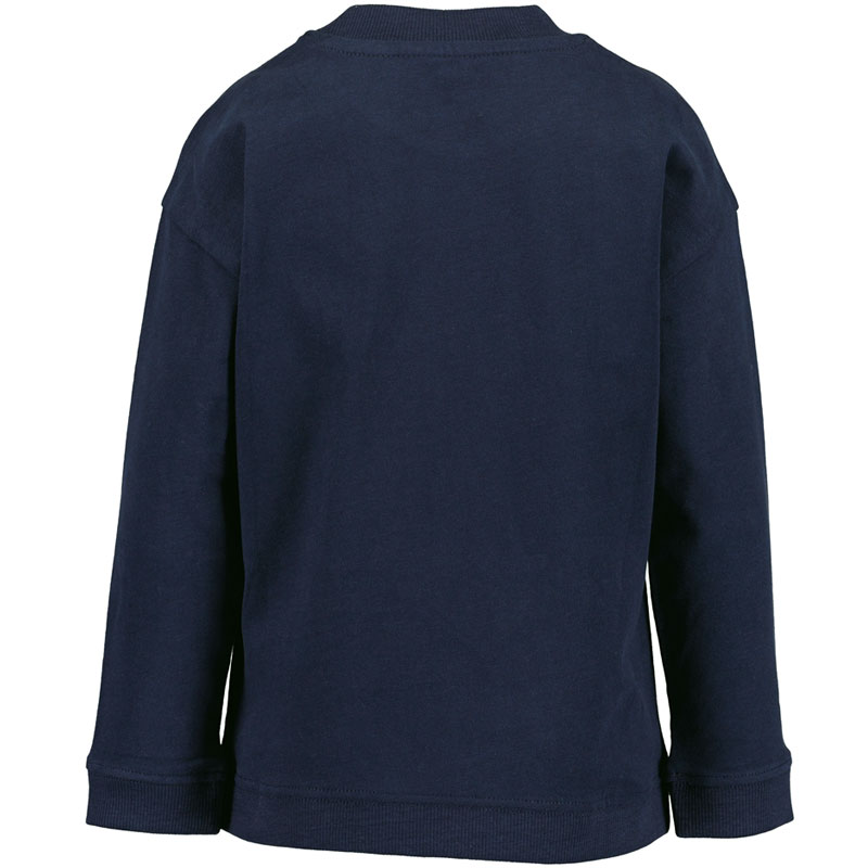Gaaf jongens sweatshirt van het kinderkleding merk Blue Seven. Het super zachte en comfortabele donkerblauwe shirt heeft de look van een sweater maar is gemaakt van stevig tricot. Op de voorkant is een coole glow in the dark print van een dinosaurus geplaatst.