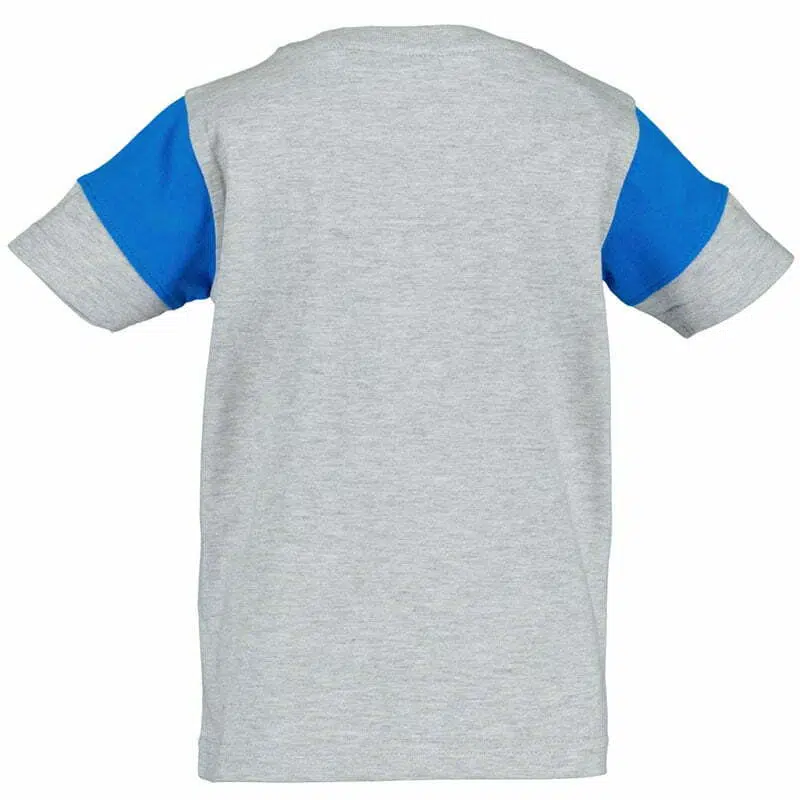 – Het jongensshirt heeft een rond halsje met boordje.