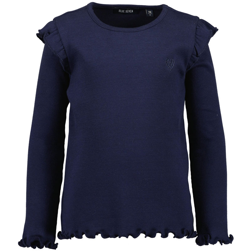 Lief donkerblauw meisjes ribshirt met lange mouwtjes van het kinderkleding merk Blue Seven.