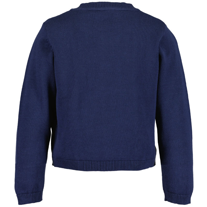 Dit mooie fijn gebreide donkerblauwe vestje van het merk Blue Seven is een echte musthave. Het heeft een vrolijk ingewerkt patroon van vlinders en lange mouwen, perfect voor frissere dagen.