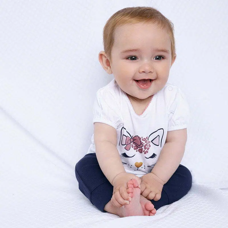– Op het linker schoudertje van het babyshirtje is een drukknoopsluiting geplaatst voor gemakkelijk aan- en uittrekken.