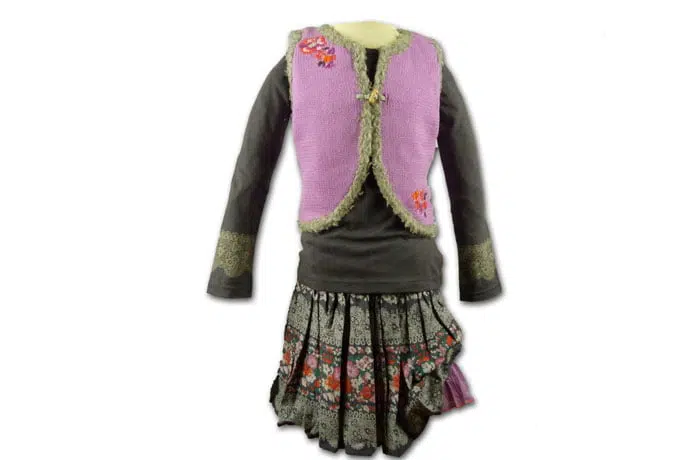 Hip gebreid meisjes gilet in de kleur purple rain, gevoerd met grijze borg van het meisjeskleding merk Cakewalk