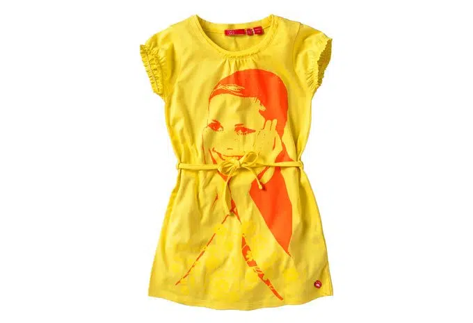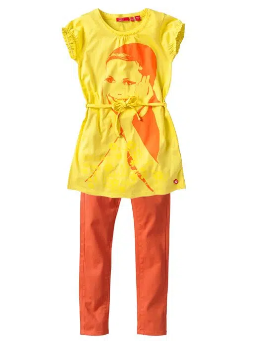 Helemaal in de kleur van deze zomer dit meisjes shirt/tuniek in het geel met een trendy print van een meisjes gezicht in het peach. Van het meisjeskleding merk Cakewalk Erg leuk in combinatie met broek Day of short Dahlia in het peach.