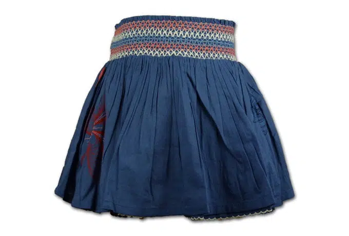 – vier fijn geborduurde bloemen op de rok