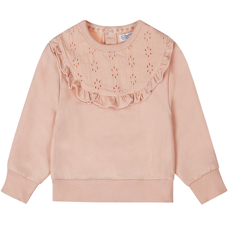 Mooie zalmroze meisjes sweattrui van het merk Dirkje. De sweater is gemaakt van zachte en soepele sweatstof met stretch wat het truitje lekker comfortabel maakt voor je kleine meid.