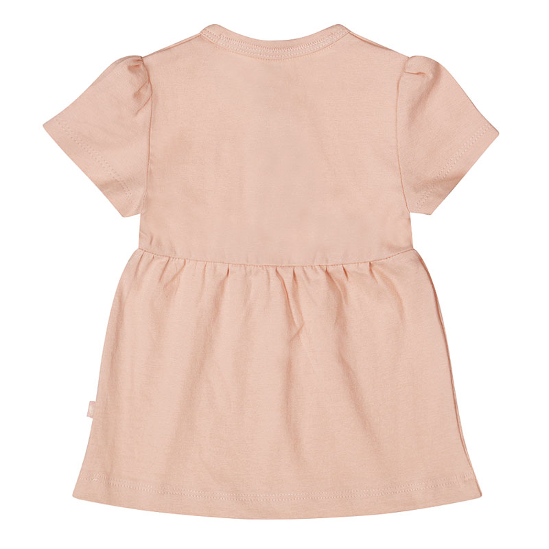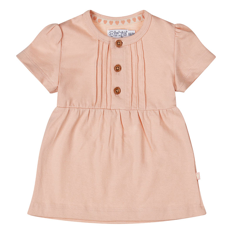 Een schattig Dirkje meisjesshirtje met kleine pofmouwtjes. Het t shirt is gemaakt van zacht zalmroze tricot met stretch en daardoor lekker comfortabel te dragen.