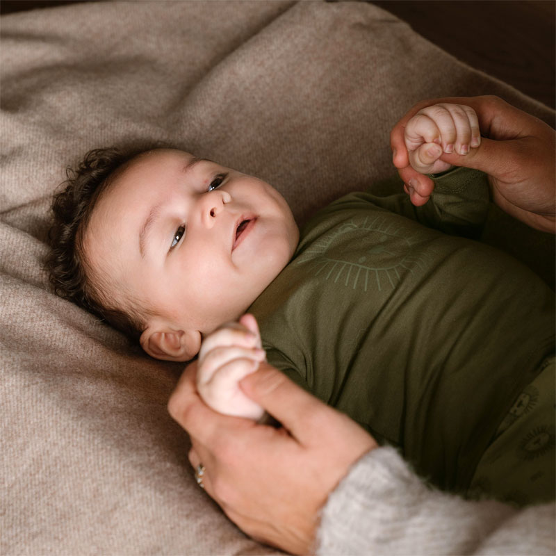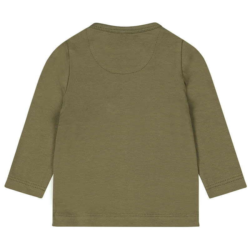 Schattig newborn jongens shirt met lange mouw van het babykleding merk Dirkje. Het babyshirt uit de NOOS collectie van Dirkje is gemaakt van heerlijk zacht en comfortabel biologisch katoen met stretch. Het baby jongens shirt is mosgroen en heeft een lief printje van een leeuwtje.