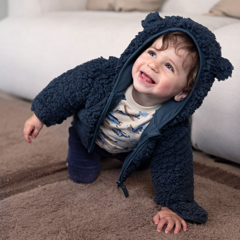 Het jasje is voorzien van handige wantjes die de handjes van je kindje lekker warm houden. Extra leuk is de capuchon met schattige oortjes! Het teddy baby winterjasje sluit met een rits. Bovenaan bij het halsje is de rits afgeschermd met een hoekje stof zodat de rits je kleintje niet zal irriteren.