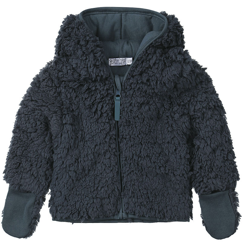Super cute en heerlijk warm dit teddy baby winterjasje van het merk Dirkje. Het babyjasje is gemaakt van knuffel zachte donkerblauwe teddy.