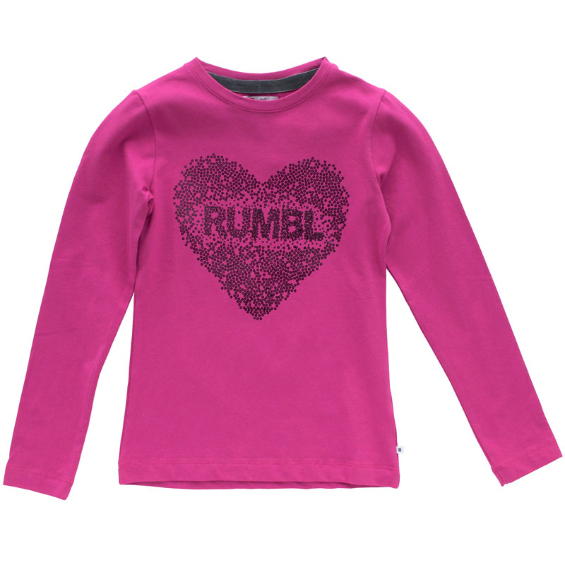 Trendy meisjes shirt in de kleur fuchsia met een hartjes print voor van het kinderkleding merk Rumbl voorheen Doerak.