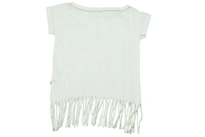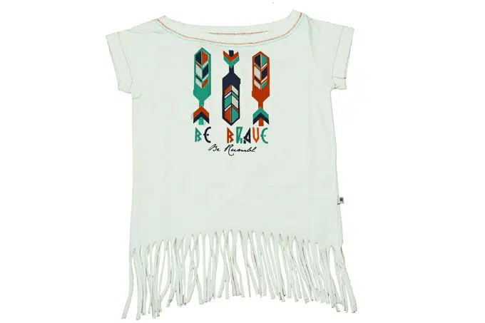 Hip wit meisjes shirt/tuniek met franje van het kinderkleding merk Rumbl. Leuk te combineren met de andere kleding in “indianen” stijl